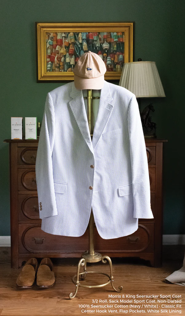Taking inspiration from the bright architecture of Charleston, Morris & King's SS24 Collection featured high-quality versions of menswear classics: cable sweaters, seersucker coats, rugby polos, and shorts.